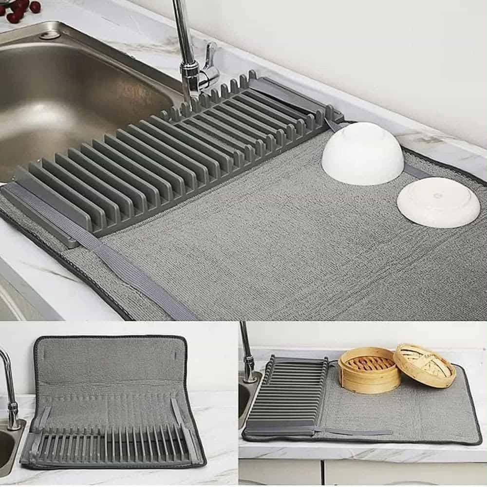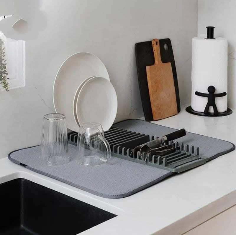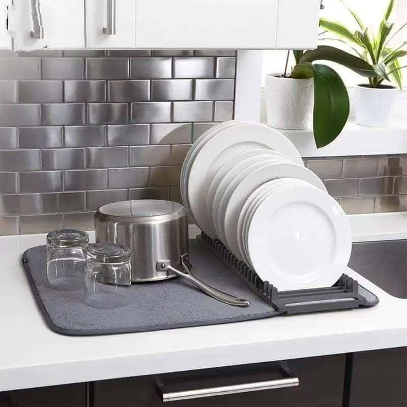منظم أطباق وأكواب قابل للطي بقاعدة تجفيف عملية..