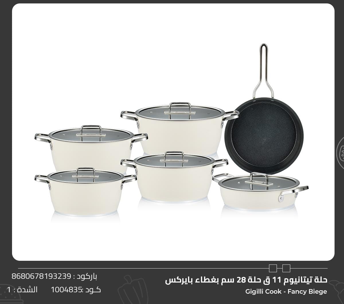 – مقاسات الحلل مختلفة (حتى مقاس 28 سم)